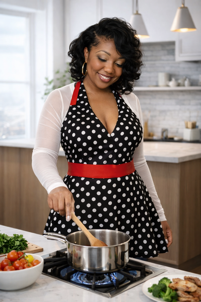 Classic Vintge Cooking Apron . This fun apron can be used for parties , a costume , or a sexy apron for that special someone . I have even had custmers wear as a top wth jeans ! How about that ?